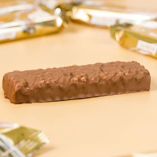 روغن کاکائو، پودر شیر کامل، پودر کاکائو، امولسیفایر (لسیتین طبیعی فلوئور سویا): این ترکیبات به طعم و بافت شکلاتی بار کمک میکنند.