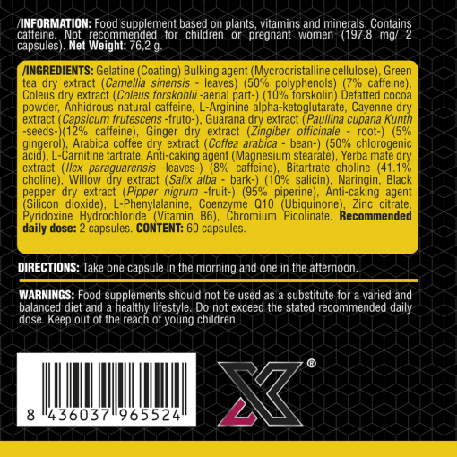 چربی سوز ترمو ایکس اچ ایکس نوتریشن HX Nutrition THERMOX حاوی 60 کپسول است. 1 کپسول صبح و 1 کپسول دیگر را بعد از ظهر مصرف کنید.