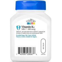ویتامین کا سنتری 100 میلی گرم 110 عدد 21st Century Vitamin K2 (MK-7) یکی از مواد مغذی مهم است که نقشهای کلیدی در حفظ سلامت استخوانها و قلب و عروق دارد. با توجه به کمبود آن در بسیاری از رژیمهای غذایی و نقش حیاتی آن در متابولیسم کلسیم، مصرف مکمل ویتامین K2 میتواند به بهبود سلامت عمومی و پیشگیری از مشکلات بهداشتی کمک کند.