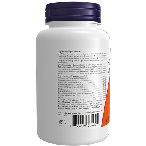 ویتامین ب 50 ناو 100 عدد Now Vitamin B50 یک مکمل کامل از ویتامینهای گروه B است که به همراه کولین و اینوزیتول عرضه میشود. این مکمل به منظور پشتیبانی از تولید انرژی، حفظ متابولیسم هموسیستئین سالم، و ارتقای سلامت سیستم عصبی ساخته شده است. ویتامینهای گروه B به دلیل خواص محلول در آب خود، به جز ویتامین B12، به راحتی در بدن ذخیره نمیشوند و نیاز به مصرف روزانه دارند. بنابراین، استفاده از یک مکمل جامع مانند ویتامین B50 ناو میتواند به برآورده کردن نیازهای روزانه و حفظ سلامتی کمک کند.