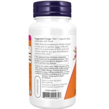 NOW PABA با گواهینامه GMP و بدون مواد GMO، سویا و آلرژنهای رایج تولید میشود و از استانداردهای بالای کیفیت برخوردار است. این محصول برای افرادی که به دنبال تقویت سطح اسید فولیک و حمایت از سلامت عمومی خود هستند، گزینهای مناسب و مفید است.