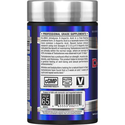 D-Aspartic Acid (DAA) یکی از مکملهای محبوب در دنیای بدنسازی و تناسب اندام است که به خاطر تأثیرات بالقوهاش بر سطح تستوسترون و بهبود عملکرد ورزشی شناخته میشود. برند ALLMAX نسخه پودری و با کیفیت این ماده را ارائه داده است که به راحتی در برنامههای تغذیهای و ورزشی قابل استفاده است.