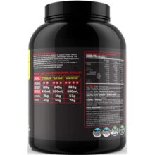 آمینو اسیدها: این محصول حاوی مقادیر مناسبی از آمینواسیدهای ضروری مانند لوسین، ایزولوسین، والین، لیزین، متیونین، ترئونین، تریپتوفان و سایر آمینواسیدهای غیرضروری مانند گلوتامین، آلانین، و سرین است. این آمینواسیدها نقش اساسی در ساخت و ترمیم عضلات، حفظ توده عضلانی و بهبود عملکرد ورزشی دارند.
