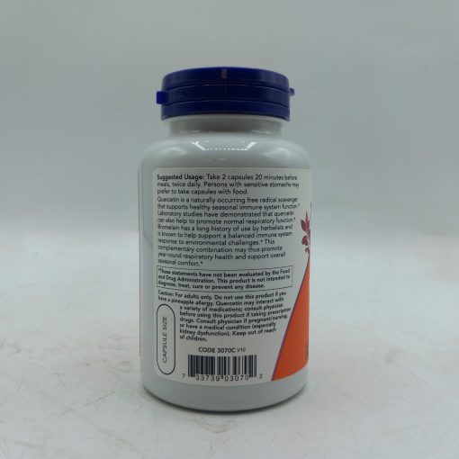 کوئرستین و بروملین ناو 120 عدد NOW Quercetin with Bromelain از عملکرد سیستم ایمنی شما محافظت می کند. کوئرستین یک پاک کننده رادیکال آزاد طبیعی است که از عملکرد سالم سیستم ایمنی فصلی حمایت می کند. مطالعات آزمایشگاهی نشان داده اند که کوئرستین همچنین می تواند به بهبود عملکرد طبیعی تنفس کمک کند. بروملین مدت هاست که در طب گیاهی استفاده می شود و به حمایت از پاسخ متعادل سیستم ایمنی به چالشهای محیطی کمک میکند. بنابراین این ترکیب مکمل ممکن است سلامت تنفسی را در تمام طول سال ارتقا دهد و از راحتی کلی فصلی حمایت کند.