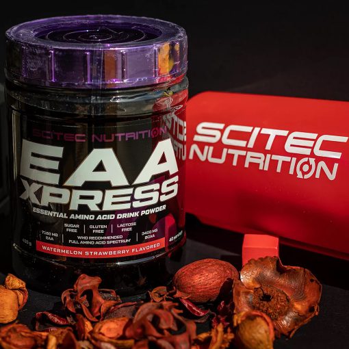 ای ای ای اکسپرس سایتک نوتریشن حاوی طیف کاملی از اسیدهای آمینه ضروری با 3400 میلی گرم بی سی ای ای و 7160 میلی گرم ای ای ای بدون گلوتن، قند و لاکتوز است.
