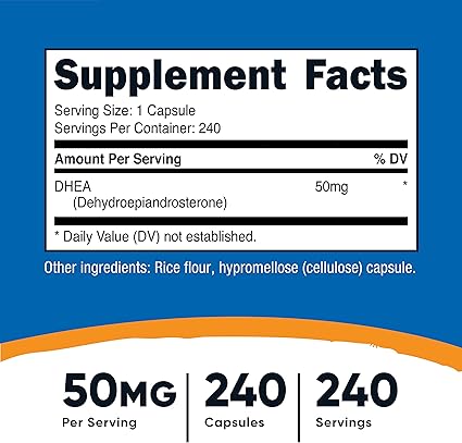 دی اچ ای آ نوتری کاست حاوی 50 میلی گرم دی اچ ای آ یا دهیدرواپی آندروسترون در هر کپسول بدون گلوتن و بدون طعم است.