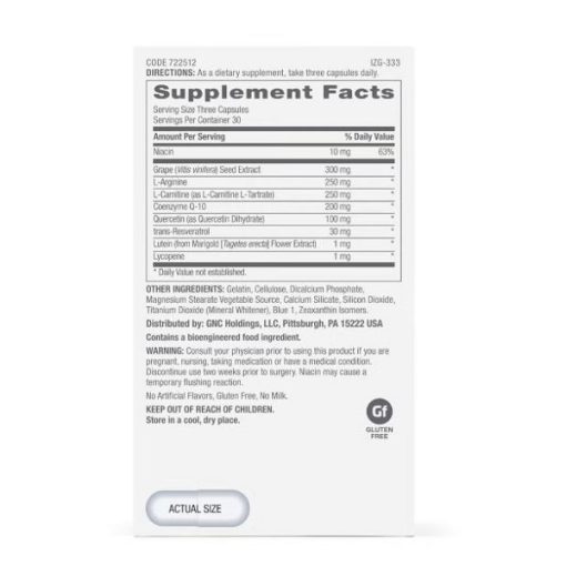 کپسول فشار خون جی ان سی GNC Healthy Blood Pressure Formula مکملی کامل برای حفظ سلامت قلب، عروق و فشار خون طبیعی است. ترکیب دقیق و علمی آن از مواد طبیعی و مؤثر مانند ال-آرژنین، کوآنزیم Q10، کورستین و عصاره هسته انگور ساخته شده است تا از عملکرد سیستم گردش خون حمایت کند.