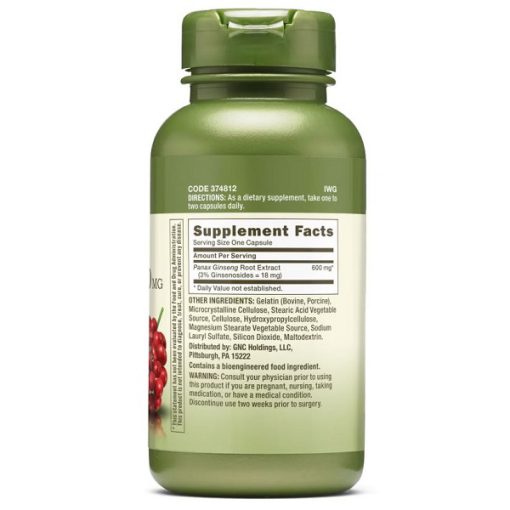 هر کپسول جینسینگ جی ان سی GNC Panax Ginseng 600mg حاوی: