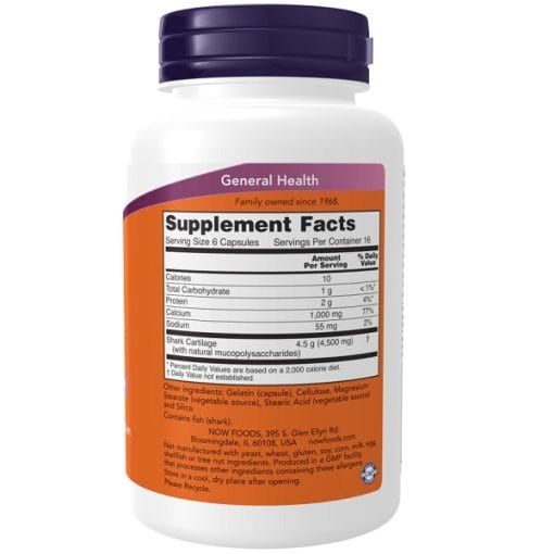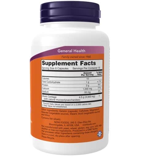 مفصل ساز شارک کارتیلیج ناو فودز NOW FOODS Shark Cartilage دارای ترکیبات زیر است