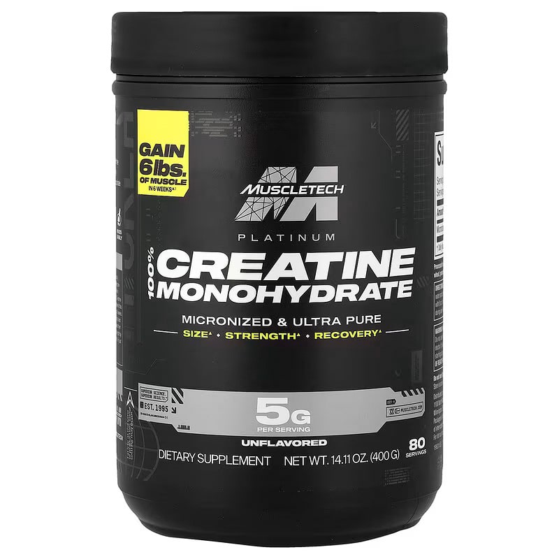 مکمل MuscleTech Platinum 100% Creatine به شما این امکان را می دهد که عرضه کراتین فسفات را در عضلات خود افزایش دهید که این امر به نوبه خود عضله سازی و افزایش قدرت عضلانی را به همراه دارد .